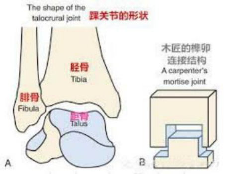 踝关节存在内侧三角韧带、外侧距腓前后韧带和跟腓骨韧带,使之非常稳定。