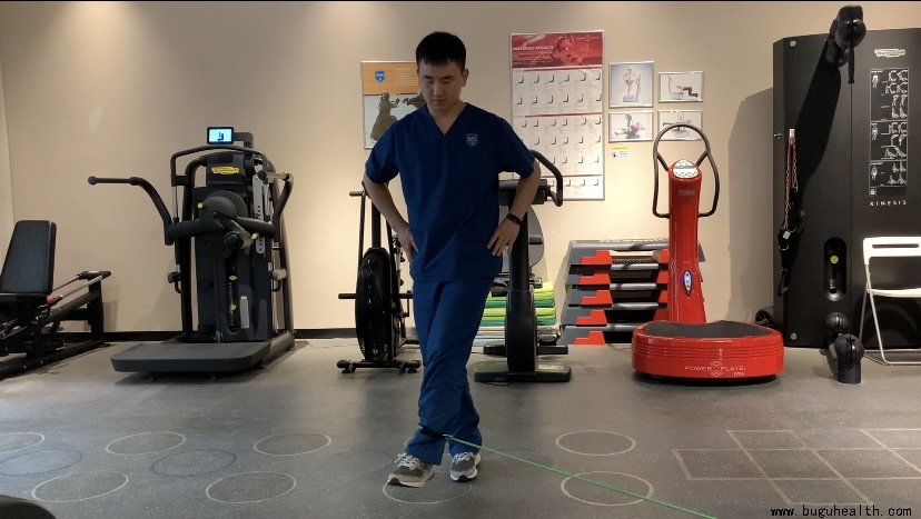 2.近端影响:臀肌无力也是造成膝关节内扣的关键原因,臀中肌主要负责髋关节外展外旋,当臀肌无力时做下蹲或者跳跃落地类动作时就会导致膝关节内扣,可以通过增强臀中肌力量改善膝关节内扣: