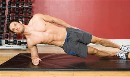 ~屈肘侧身支撑转体:在静态平板支撑的基础上,用一只手支撑,另一只手做外展,直到身体保持完全侧位,