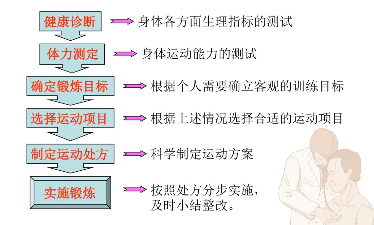 运动健康指导师、康复医师、康复治疗师、体育指导员、临床医生参与,对从事体育锻炼者或病人,根据医学检查资料(包括运动试验和体力测验),按其健康、体力以及心血管功能状况,用处方的形式规定运动种类、运动强度、运动时间及运动频率,提出运动中的注意事项。运动处方是指导人们有目的、有计划和科学地锻炼的一种方法。