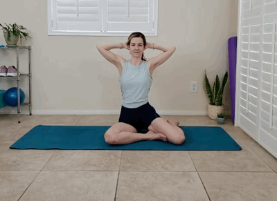 双手放在后脑勺,吸气延展脊柱