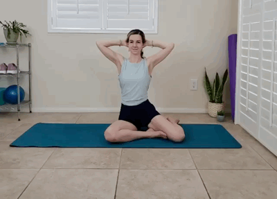 双手轻托后脑勺,呼气,卷腹向上