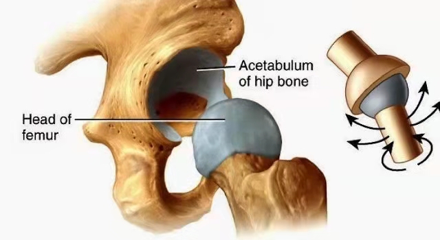 髋关节基本上是一个球状关节,骨盆像是一个冰淇淋勺一样将髋关节包在里面。我们的股骨最上端,称为「股骨头」,是一个球状的关节。