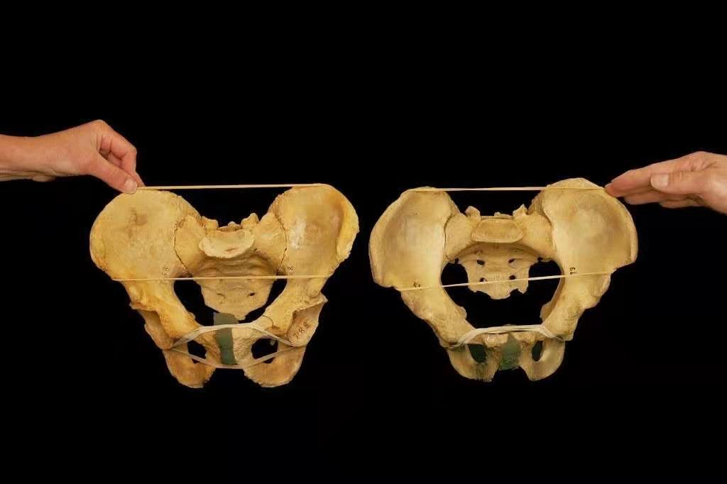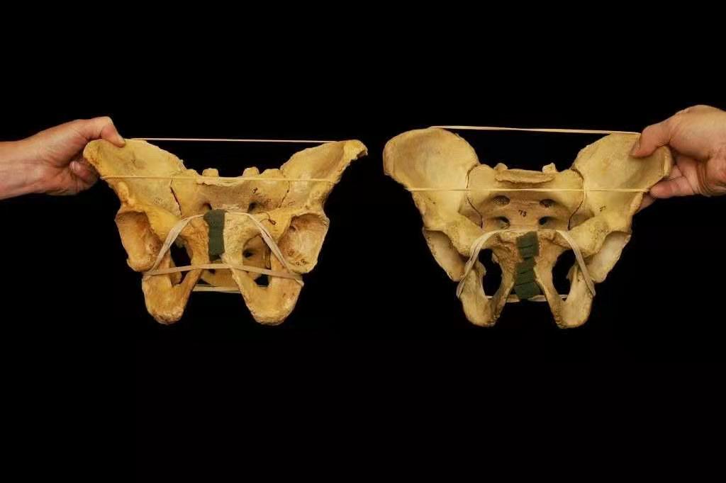 现在,我们从骨盆的正面再看一次这些图片:看到了吗?两边基座方向是不一样的!