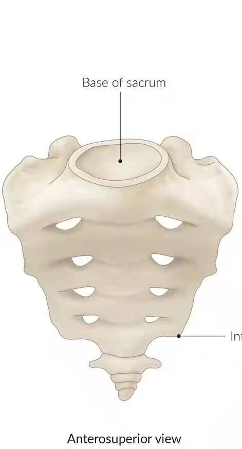 而反点头,顾名思义就是和点头动作正好相反。骶骨底(sacral base,图4),也就是骶骨上表面和L5相接触的部位,相对于髂骨出现前倾,我们称之为骶骨点头。之所以称为相对于髂骨的运动是因为该动作发生时,可以是骶骨往前转动(rotating anteriorly),也可以是髂骨往后转动(rotating