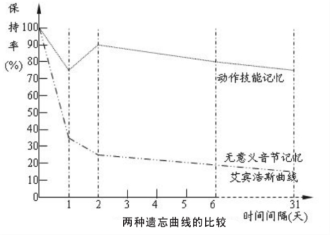那什么是运动记忆那?运动记忆就是由专管运动的小脑对肌肉运动的记忆。这里所说的肌肉运动,既指人的躯干、四肢的运动动作,也包括身体其它各个部位肌肉的运动。运动记忆比其它各种记忆要持久得多。例如,我们通过视觉记忆记住的一些英语单词,如果不能及时复习巩固不会多久就遗忘了。但是 我们如果学会了自行车、滑冰或舞蹈之后,即使经过多年不再接触这种运动,但是对这种运动的记忆,却能够保持相当长的时间甚至永远不忘。