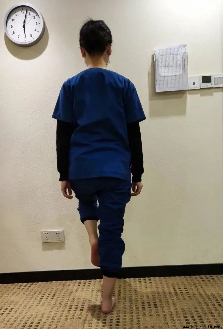 l 被检下肢单腿站立(可以用手轻轻扶墙以维持平衡),膝关节伸展