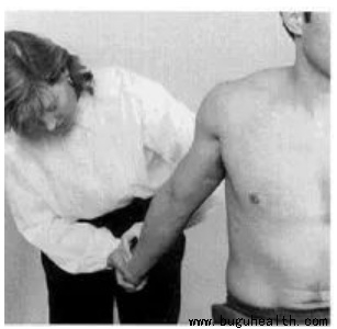 操作方法:患者取站姿,检查者站在身后,一手固定患者肩关节,另一手触诊患者桡动脉。将患者放在外展30°且后伸的位置,同时患者做头部后仰的动作。