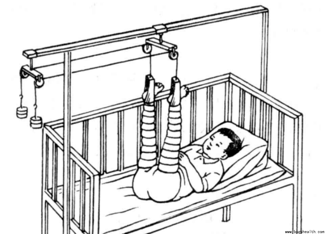 2、骨牵引:对于4岁以上儿童及成人均可采用骨牵引。