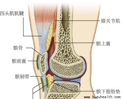 髌上囊从股四头肌及其肌腱下的髌骨正下方向上延伸。该囊的固定部分依赖于股中间肌、又叫做后跗节肌。股四头肌肌腱和髌上可能因损伤、不适当运动或创伤发展为炎症,继而影响膝关节功能。术后长期制动原因髌骨活动降低,随之便影响髌上囊的滑行。