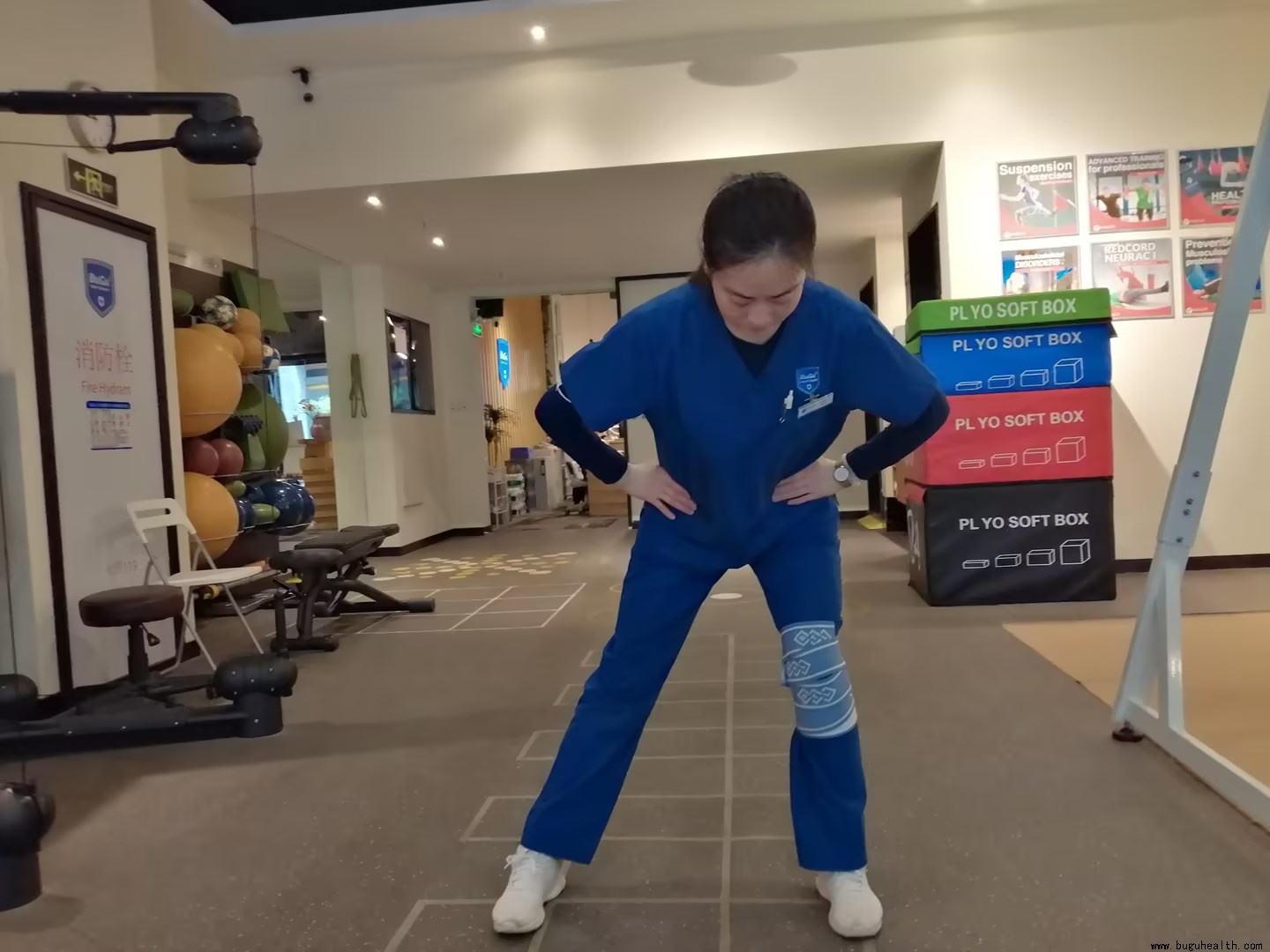 双脚开立大约两个肩宽的距离,将重心放在患侧腿开始做下蹲的动作,过程当中重心始终在患侧,确保小腿垂直于地面(否则膝关节会承受过多压力)并保持髋膝踝同一平面,运用到之前静蹲练到的臀部和腿部力量蹲起,回到站立位,每天进行15-20次*3组。
