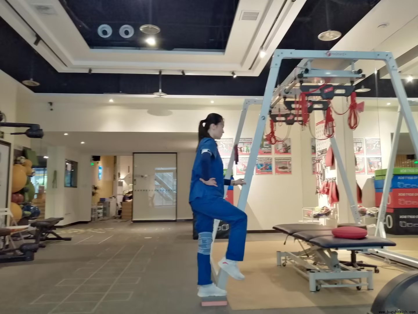 很多患者逐渐恢复了正常步态,静蹲等力量训练也一直在进行,但上楼总是使不上劲儿,这是为什么呢?主要是因为上楼梯这个动作属于单侧发力,而且是患侧从屈膝到直膝将整个身体垂直向上移动15-20厘米,所以既需要保持膝关节稳定、又需要有足够的肌肉力量,因此基础的静蹲、走路等训练是远远不够的。你需要强化单侧膝关节的肌肉力量及稳定能力。