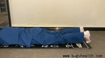 伸直的角度,可以用一种简单的方式,足跟垫起,膝关节放松,靠重力逐渐将膝关节压直,保持10分钟,2次/天。这个动作既是训练动作,也是检查动作,训练后观察双膝伸直角度是否一致。从侧方观察膝关节跟床面之间的距离,双侧是否一致。