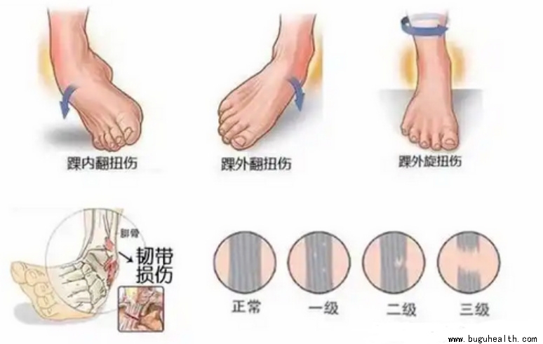 对于Ⅰ级踝关节扭伤,需制动休息1-3天;Ⅱ级踝关节扭伤需休息1周左右,予以步行靴或石膏固定,早期康复锻炼;对于Ⅲ级踝关节扭伤,固定2-3周后功能锻炼,然后部分负重行走。