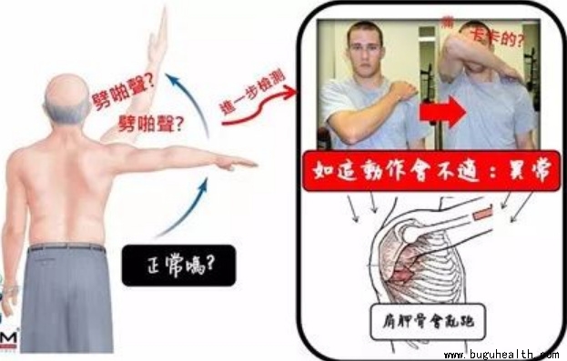 如果你的工作必须经常抬手举重物,或者你选择的运动项目需要手举高,那请继续看下面的检测动作,你有可能是肩袖损伤了,也有可能是肩峰撞击综合症。