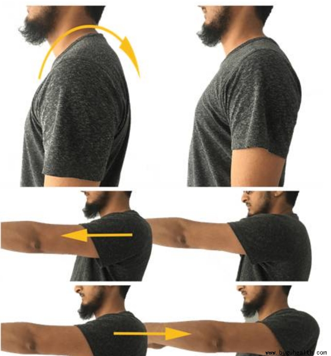 你可以通过以下动作自我拉伸放松冈上肌。