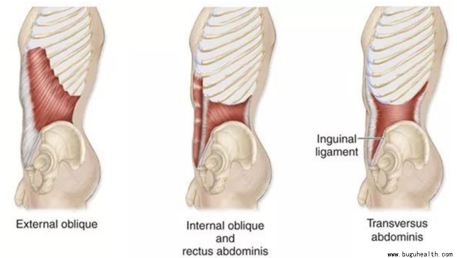 腹内斜肌:从8-12根肋骨连到髂脊还有耻骨上