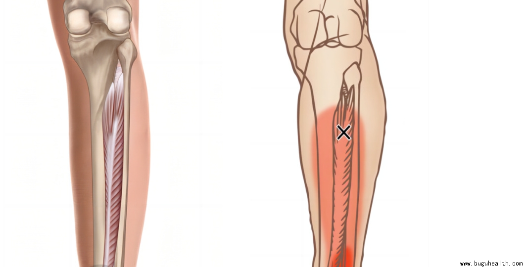 胫骨后肌的激痛点引发的疼痛主要集中在跟腱的位置,尤其在走路和跑步时更为明显。有时候疼痛还会扩散至小腿后部、足跟和整个足底,很容易让人误诊为跟腱炎。