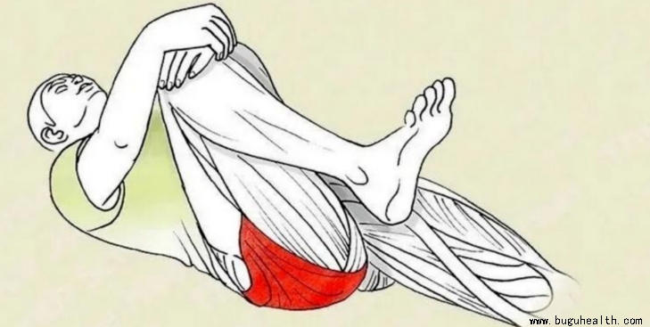 伸展梨状肌和周围的肌肉。例如:仰卧,然后将一侧膝盖拉向胸部。保持五到三十秒,然后换另一条腿。