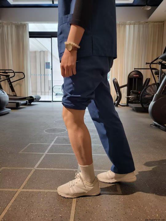 如果伸膝迟滞的问题也解决了,但走路膝盖还是会打软或者微屈,直接练单脚站是很难纠正的,我们可以通过站姿伸膝来改善。