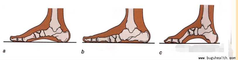 图二:a:正常足弓;b:低足弓; c:高足弓