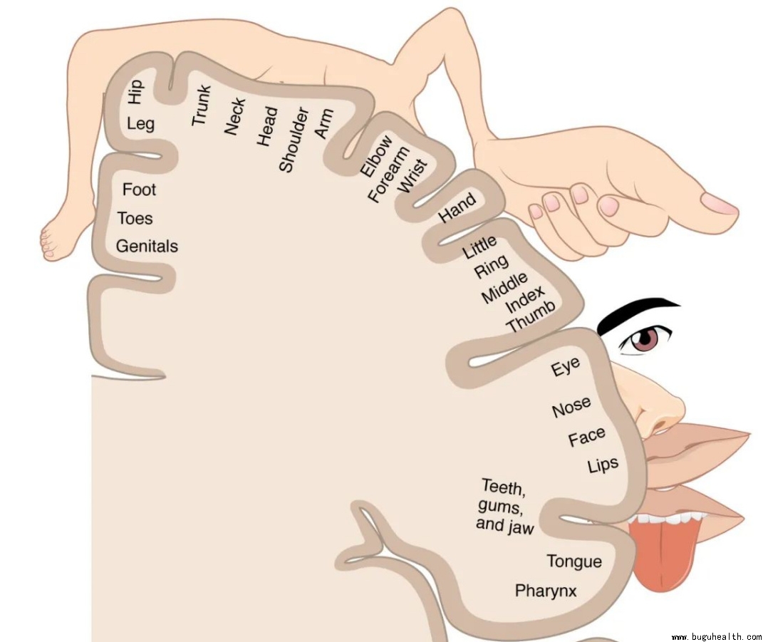 我们的大脑中存在一个感官侏儒,主要控制躯体的感觉和运动。如果一个部位使用的越多,它在大脑皮层的反射区越大,用的越少,反射区越小,所以这个小人是大手、大嘴巴和大脚。如果受伤后长期不运动或者以错误的方式使用身体,大脑反射区就会发生改变。只是让伤口长好,不去恢复功能,这只是成功了一半,另一半就是通过运动康复,恢复身体的功能,校正大脑的反射区。