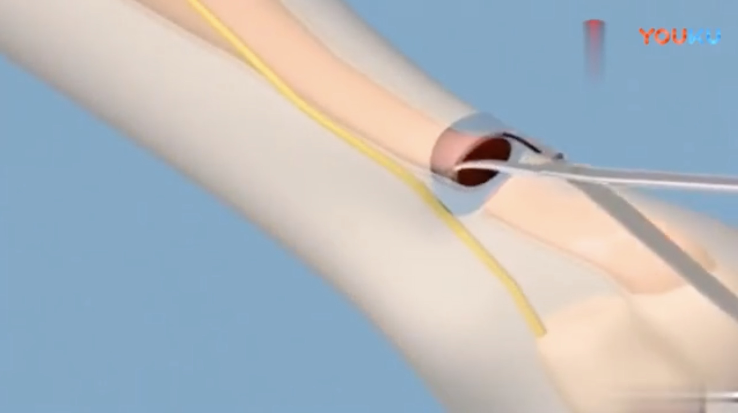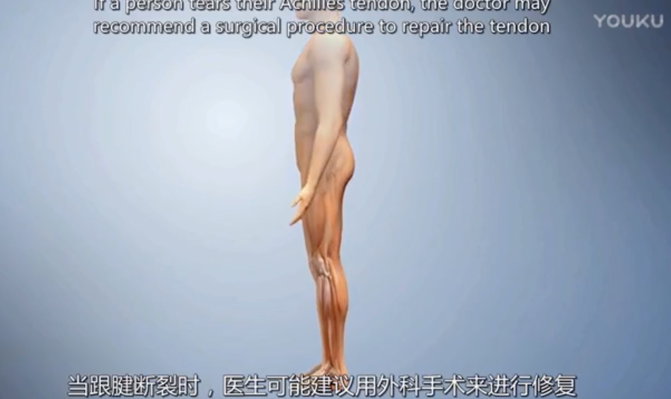 除直接暴力导致的跟腱断裂外,间接暴力导致跟腱断裂的机理是当踝关节处在过伸位小腿三头肌突然发力引起。当踝关节在背伸20度°~30°发力跖屈时跟骨结节到踝的轴心半径大,跟腱处于极度紧张状态,此时突然用力踏跳,已紧张的跟腱需要承担超过自身重力几倍的力,跟腱发生断裂。