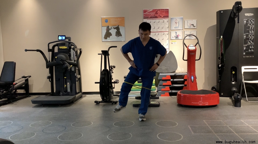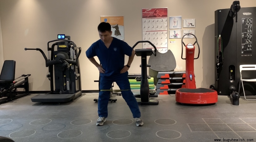 2.近端影响:臀肌无力也是造成膝关节内扣的关键原因,臀中肌主要负责髋关节外展外旋,当臀肌无力时做下蹲或者跳跃落地类动作时就会导致膝关节内扣,可以通过增强臀中肌力量改善膝关节内扣: